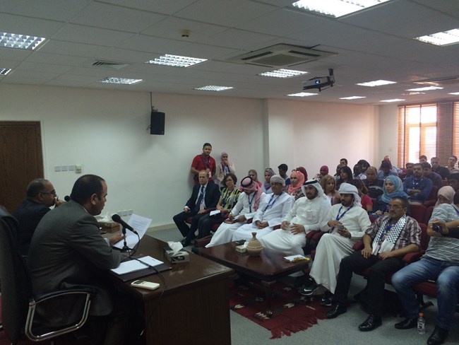 As part of the 12th Youth of the Arab Capitals Forum, currently being held in Jordan, a delegation of 80 Arab young men and women visited Jordan Media Institute (JMI), where they met with the Dean Dr. Basim Tweissi. The delegation was briefed about the institute, the admission process as well as the trainings offered, and toured the facility. They also watched JMI’s corporate video and a descriptive video of “Akeed”, JMI’s project for monitoring the credibility of the Jordanian media.<br />