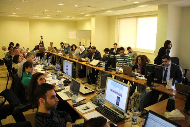 This training includes a group of editors, journalists and bloggers from the MENA region for the first two days. Participating countries include Yemen, Egypt, Iraq, Lebanon, Jordan, Palestine, Oman, Bahrain, Qatar, UAE, and Libya, while the third day’s participants will include JMI’s Master’s students in Journalism and New Media.<br />