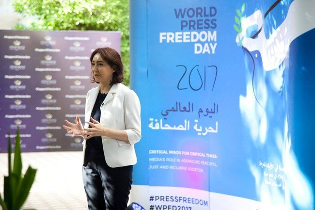 <div style="direction: rtl;"><span style="background-color:rgb(242, 242, 242); color:rgb(0, 0, 0); font-family:tahoma; font-size:14px"><span style="line-height:1.6em">وقالت ممثلة اليونسكو في الأردن، كوستانزا فارينا، إن اليوم العالمي لحرية الصحافة يؤكد أهمية الصحافة الحرة والمستقلة في المضي قدما بجدول أعمال 2030 بخطى ثابتة، مشيرة إلى أن حرية الإعلام تحدد مدى الانفتاح والشفافية التي يحظى بهما المجتمع كبعدين أساسين لممارسة حق حرية التعبير بشكل كامل</span><span dir="LTR" style="line-height:1.6em">.</span></span></div>