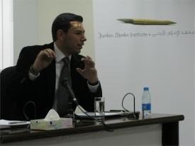 <div dir="rtl" style=""> عمان، 5 كانون الثاني 2012 استعرض الصحافي أيمن محي الدين خلال محاضرة ألقاها في معهد الإعلام تجربته في تغطية الحرب في قطاع غزة 2008- 2009 وتغطيته لأحداث الثورة في مصر بالإضافة إلى التحديات الأخلاقية التي يواجهها الصحافيون في تغطية الأزمات والمناطق المتأثرة بالعنف.<br /> وذلك ضمن سلسلة المحاضرات التي ينظمها المعهد لطلاب برنامج الماجستير بهدف توفير الفرصة للطلاب للقاء والاستماع والتعلم من تجارب العديد من الخبراء. هذا وقد حضر هذه المحاضرة طلاب كلية الإعلام في كل من جامعتي البتراء والشرق الأوسط بالإضافة إلى الدكتور حلمي ساري عميد كلية الإعلام في جامعة الشرق الأوسط. ويعمل أيمن محي الدين في الوقت الحالي كمراسل للشرق الأوسط في شبكة NBC وسبق أن عمل مع قناة CNN وقناة الجزيرة. للمزيد من المعلومات ولحضور المحاضرات والجلسات الحوارية التي يعقدها معهد الإعلام الأردني يرجى الاتصالِ بإيمان المعنقر,منسق الإعلام والاتصال</div>
