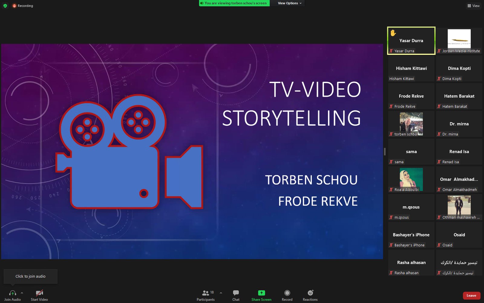 يومٌ مميّز يفتتح فيه معهد الإعلام الأردنيّ أسبوعه الرابع من العام الجديد، إذ ينفّذ المعهد تدريبات جديدة في سرد القصص التلفزيونية لطلبة برنامج الماجستير في الصحافة والإعلام الحديث بالشراكة مع المعهد النرويجي، ويقدّم التدريب للطلبة المخرج والمراسل التلفزيونيّ الدنمركي توربن شو بإشراف مدير معهد الصحافة النرويجي السابق "فروده ريكفي".