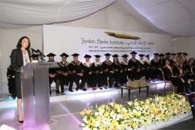 عمان، 17 أيلول 2012 تحت رعاية صاحبة السمو الملكي الأميرة ريم علي احتفل معهد الإعلام الأردني بتخريج الدفعة الثالثة من طلبة الماجستير لعشرين طالباً وطالبة في الصحافة والإعلام الحديث، بحضور شخصيات رسمية وأكاديمية وإعلامية وجهات مانحة. وقامت سموها بتسليم الشهادات للخريجين يرافقها الأستاذ الدكتور اخليف الطراونة رئيس الجامعة الأردنية، والدكتورة عبير النجار القائم بأعمال العميد في المعهد. وخاطبت سمو الأميرة ريم علي الحضور قائلة " ان المعهد يحمل رسالة تدخل في صلب مبادئه وأهم ما فيها أن يتعلم طلابنا ان حرية التعبير حق من حقوق الإنسان بدون هذا الحق لا يكون الإعلام، هذا بالطبع مع المحافظة على أخلاقيات مهنة الصحافة التي تمنع الإساءة الى هذة الحرية " مضيفة أن المعهد مستقل في برامجه بالتنسيق مع الجامعة الأردنية ولا يخدم الا المواطن. وحث معالي السيد ابراهيم عزالدين الخريجين على مواجهة التحديات التي يواجهها الإعلام والإعلاميون في مجتمعاتنا العربية عن طريق العمل الجاد والمهني وتطبيق ما تعلموه خلال دراستهم في المعهد قائلا " المهنية عماد العمل الصحافي الذي تملكون ناصيته ولا يستطيع أحد ان ينازعكم إياه.<br />