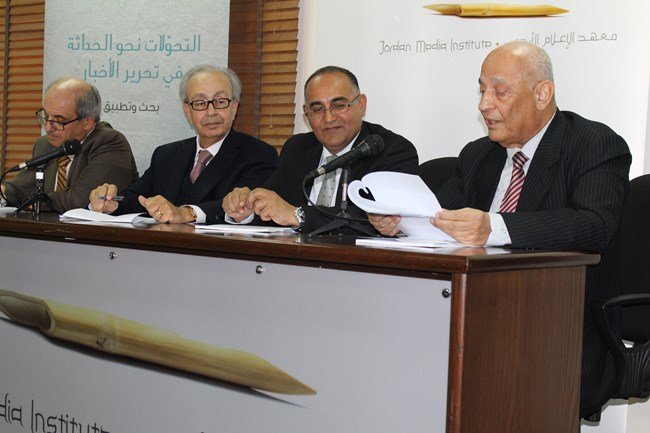احتفل معهد الإعلام الأردني يوم الإثنين بتوقيع كتاب "التحولات نحو الحداثة في تحرير الاخبار: بحث وتطبيق" لمؤلفه د. جان جبران كرم، استاذ التحرير والكتابة الصحافية في المعهد، تحت رعاية سمو الأميرة ريم علي، مؤسس المعهد، وقدم قراءات في الكتاب الدكتور جورج كلاس، العميد السابق لكلية الإعلام بالجامعة اللبنانية والدكتور تيسير أبو عرجة، عميد كلية الإعلام في جامعة البترا.<br />