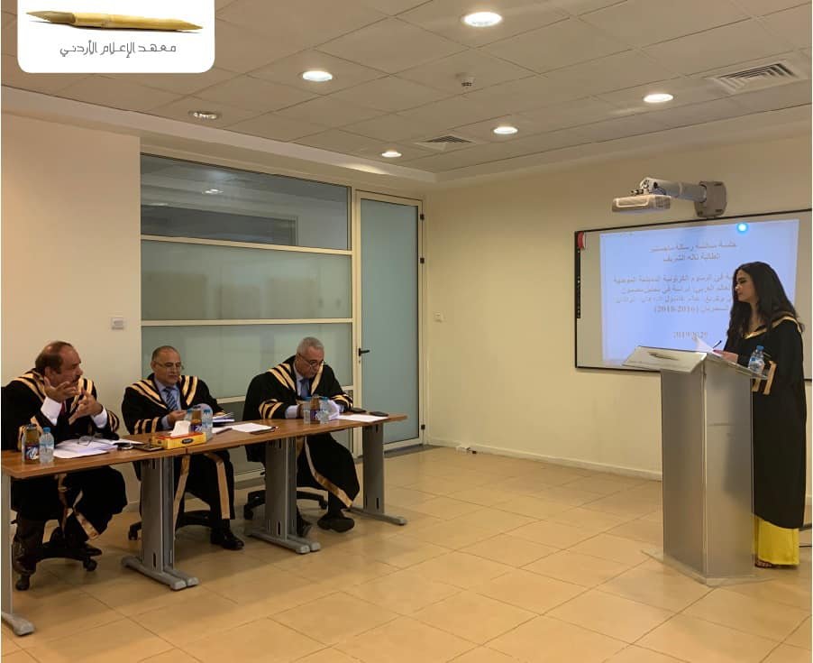 وفي نهاية المناقشة قررت لجنة المناقشة المشكلّة من الدكتور باسم الطويسي والدكتور حلمي ساري والدكتور صخر الخصاونة منح الطالبة درجة الماجستير في الصحافة والإعلام الحديث.