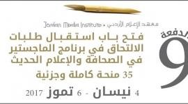 Amman -- The Jordan Media Institute (JMI) has announced the start of submitting applications for the MA Program of Journalism and New Media for the ninth intake for the year 2017-2018,...